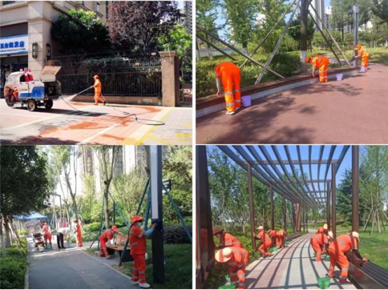 本次活动避开高温时段,利用早晨凉爽时间开展作业,重点对航开路、航天南路、神舟四路绿化广场等区域内部卫生死角、路面进行深度清理保洁,对整治区域内果皮箱、座椅等公共设施进行全面大擦洗。此次活动共出动环卫保洁110余人,集中擦洗城市家具约560余处。