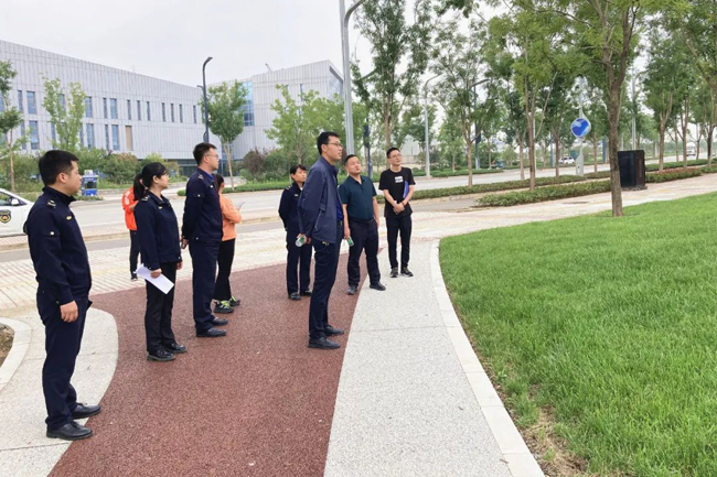 近日,西安市城市管理和综合执法局城市绿地建设处副调研员樊建为一行来到航天基地,对园林绿化建设提升项目进行督导检查。航天基地城市管理和综合执法局工作人员参加检查。