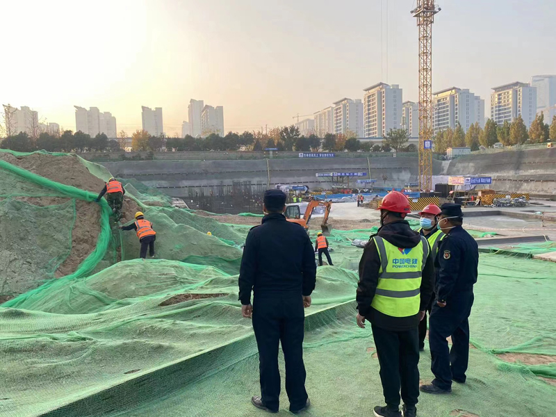国际港务城管执法局组织人员,对陆港七小、地铁十号线等项目施工现场进行全方位检查排查,针对检查中发现沙石、黄土裸露、车行道路积土厚、基坑周边未设置安全警示标识等问题,现场通知施工负责人,督促施工工地立行立改。