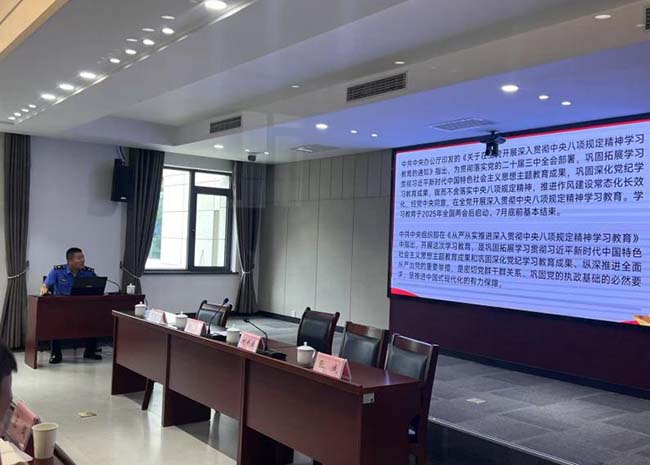 机关第一党支部书记徐文丹从历史纵深切入,深刻阐述从“延安整风”到“中央八项规定”精神传承,并结合城管领域执法风险点(如现场执法等),警示全员“刀刃向内”筑牢防线,提出让中央八项规定精神在执法一线扎根。直属一中队党支部书记冯雷紧扣实践要求,系统解读中央八项规定核心要义,剖析锲而不舍落实的必要性,并代表直属一中队表态切实加强作风建设,为高质量完成城管工作贡献力量。