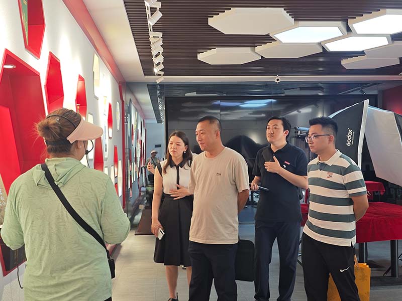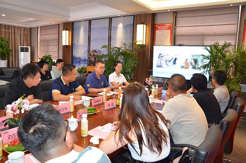 实地调研结束后,双方在党建会议室进行了座谈交流。天缘公司妇联主席、行政人事部经理李丽珑在致辞中表达了对凤凰数智产业学院领导一行的热烈欢迎。在天缘文旅事业部负责人张显,创新中心负责人张正宇先后介绍了各自版块的基本情况后,凤凰数智产业学院副院长陈智明、王官等领导从专业的视角分享了此行的感受和对未来发展的期许,陈院长用“有情怀,有温度,有深度,有广度”为以张宗科董事长为代表的天缘人点赞,王官副院长从文旅、创新中心的运营与后期的合作方面谈了自己的思考与建议,不同视角、不同见地有力的驱动校企双方围绕着“目标与价值”,通过产学研的深度融合、双向奔赴,交流过程中的气氛特别热烈。