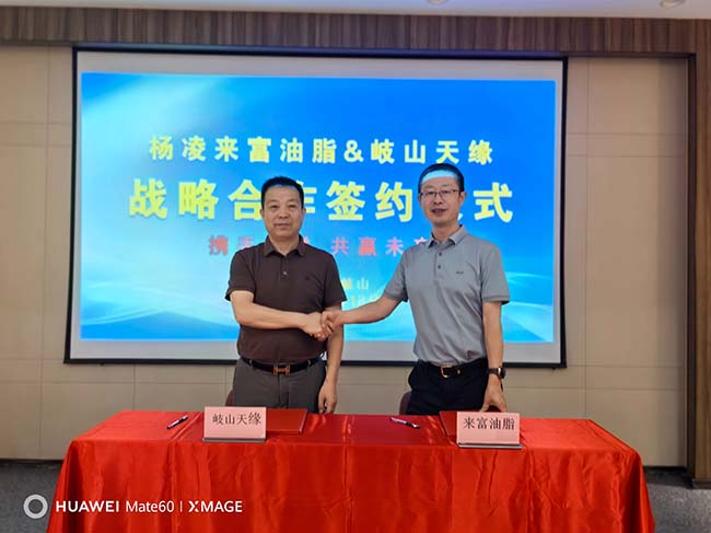 最后,陕西来富油脂总经理乔靖飞与岐山天缘董事长张宗科签署战略合作框架协议,宣布正式开启战略合作新模式。(文/晨曦)