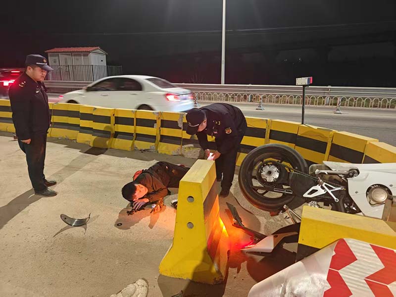 轿车摩托相撞,他深夜筑起“安全防线”