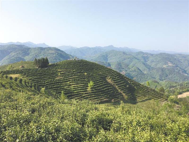 远处的青山,近处的茶园,头顶的蓝天,老县镇蒋家坪村在春天的阳光下格外美丽。