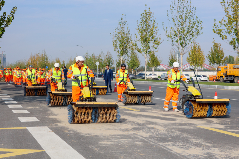 西安浐灞国际港城管局开展扫雪除冰应急演练活动