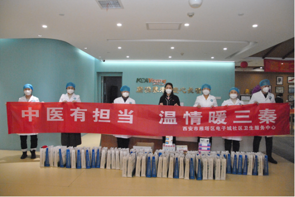 为做好辖区养老机构健康服务工作,更加广泛地普及中医药防疫知识,1月6日,雁塔区电子城社区卫生服务中心组织医护团队深入辖区某养老机构“长者屋”,为老人们送去5个指脉血氧仪,60瓶“84”消毒液、60份爱心健康包、60个抗原检测试剂,以及中医药防疫知识手册等。健康包里有用于止咳、化痰、退热的中成药苏黄止咳胶囊、热炎宁合剂和氨加黄敏胶囊,以及医用外科口罩、防疫温馨提示等物品。