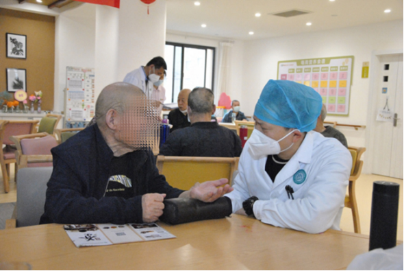 走进“长者屋”养老机构,随行的中医大夫为老年人们把脉问诊,全科医生为老人们测量血氧饱和度、测量血压和餐后血糖,询问老人们近期健康状况,介绍中医药抗疫实践中总结筛选的“三药三方”,普及中医药防疫知识。针对有高血压、糖尿病、关节炎等慢性疾病的老人,健康教育的大夫从合理膳食、合理用药、科学保健等方面给予老人们健康指导。同时,医护人员向现场陪同的养老机构工作人员讲解了日常老人们规范戴口罩、勤洗手、常通风的重要性。