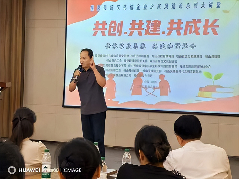 优秀传统文化进企业之家风建设系列大讲堂在岐山天缘已连续开展数年,成为企业文化建设的重要部分。自2019年首期青少年立志营创办以来,公司更是在每年立志营开班之际,同步举办家风建设亲子研讨会,形成“立志营+家风教育”的特色模式。
