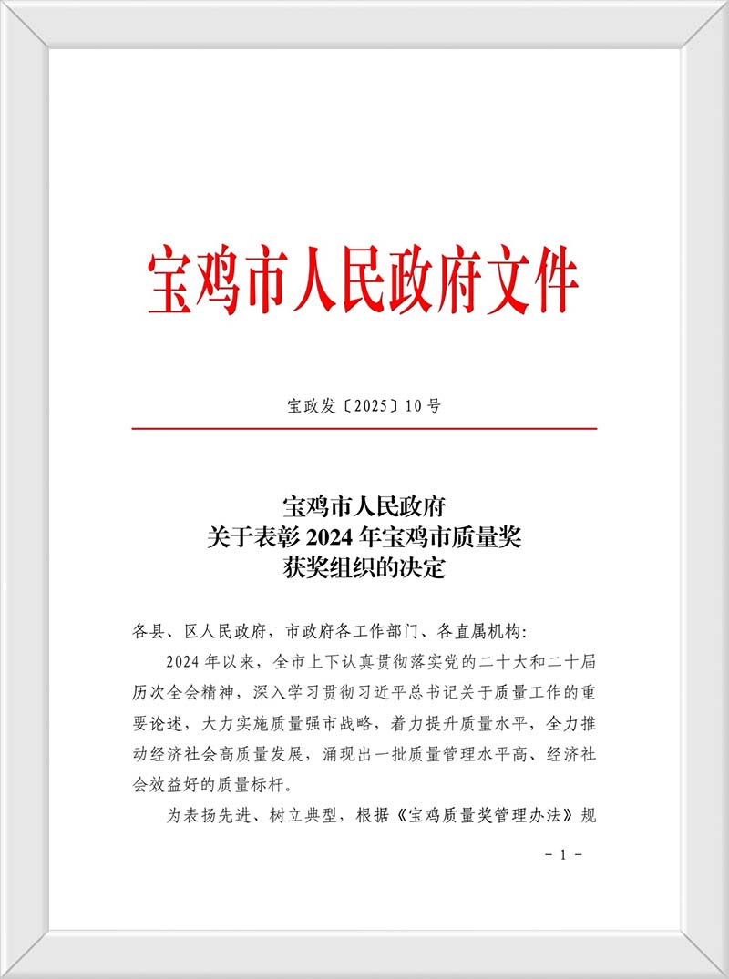 2025年,岐山天缘按照“高质量发展”的整体战略部署,生产技术中心牵头协调资源、统筹安排、一体推进,积极申报“宝鸡市质量奖”,最终,在全市食品生产制造企业中脱颖而出,荣膺“宝鸡市质量奖提名奖”,成为唯一一家获得此殊荣的食醋生产制造企业。“奖项是鼓励,发展无止境”,在天缘事业高质量发展的进程中,这,仅仅是开始,是序曲!