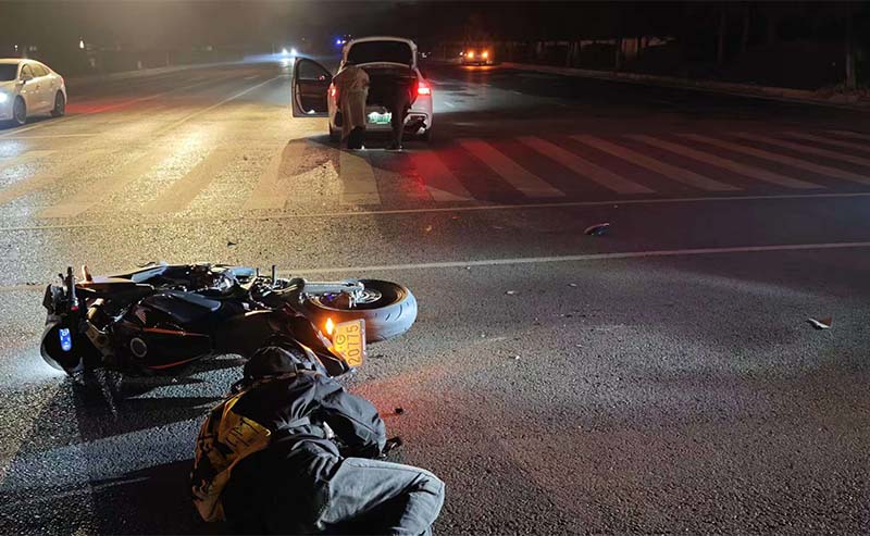 轿车摩托相撞,他深夜筑起“安全防线”