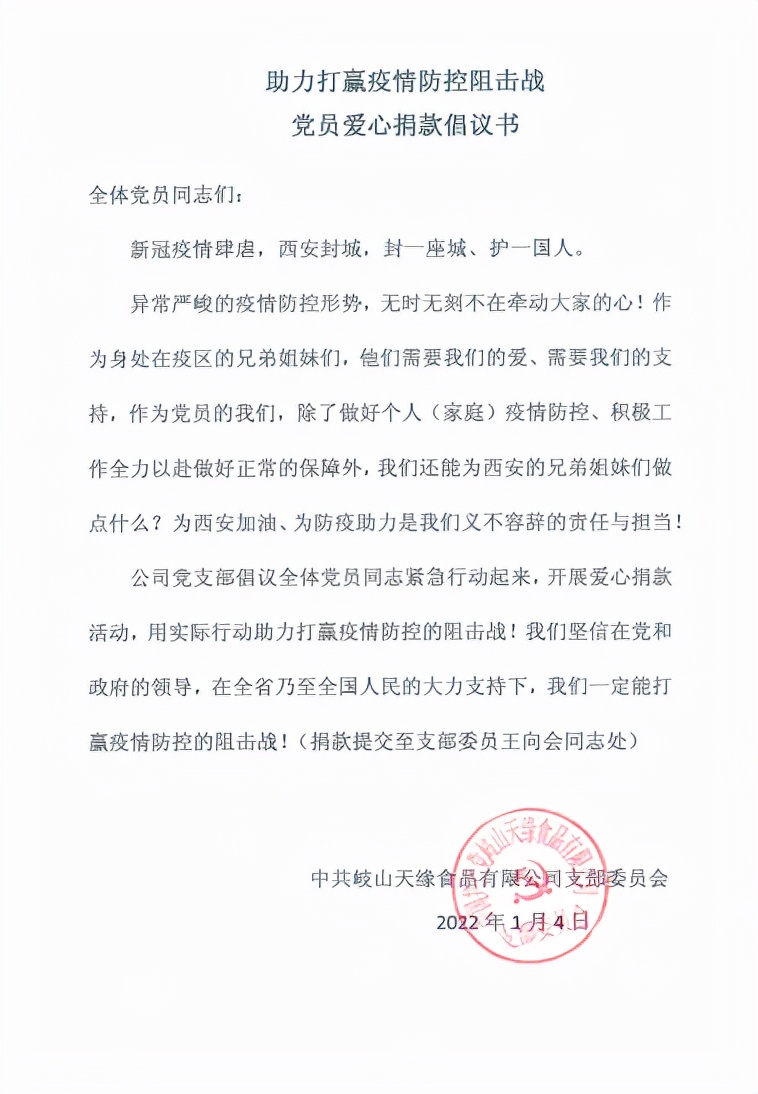 于1月4日发出爱心捐款的倡议