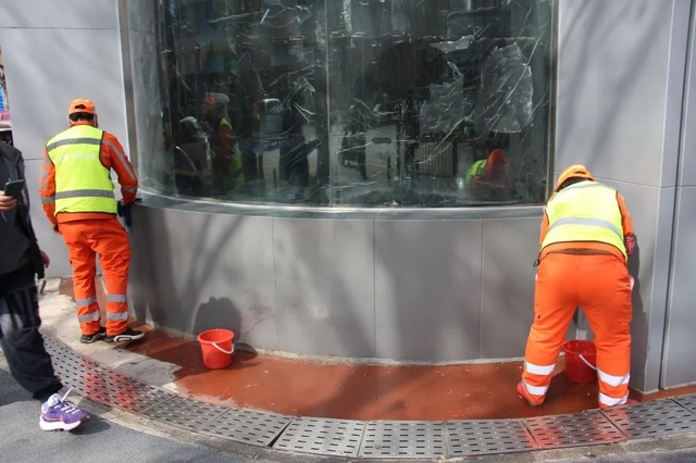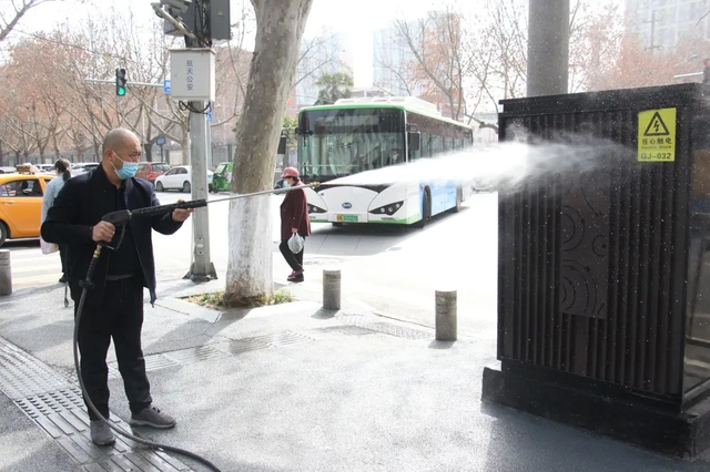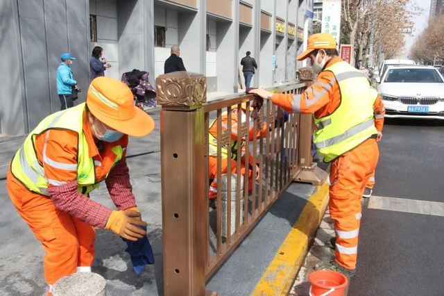 组织环卫人员重点对凤栖东路、东长安街、航创路等道路城市家具及一层沿街建筑外立面进行全面擦洗,对各类设施上的野广告进行清理,同时积极督促沿街商户认真落实门前“三包”责任,擦洗外立面。