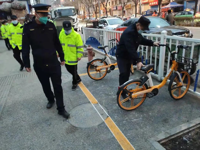 组织执法人员开展非机动车辆规范停放专项整治,对占压盲道、遗弃在绿化带的共享单车进行依法暂扣。执法人员深入沿街商铺、社区号召广大居民群众争做文明市民,对身边不文明停放行为主动劝说,对恶意毁坏共享单车行为主动制止,对乱停乱放非机动车辆主动规范摆放,维护辖区良好公共秩序。