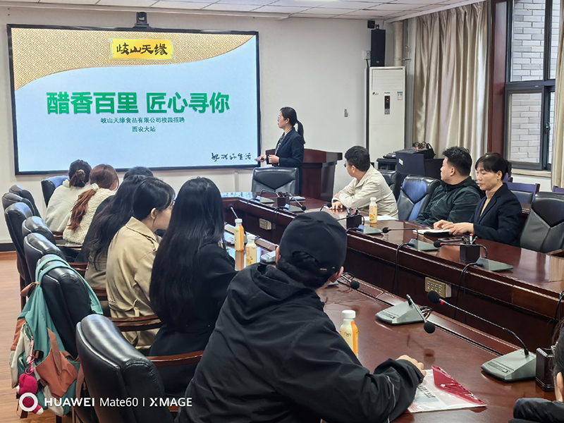 10月16日,岐山天缘2026知名高校巡回招聘宣讲活动在西北农林科技大学食品学院正式启幕。岐山天缘行政人事部人力资源主管冯国妹以”醋香百里,匠心寻你“为主题,做现场宣讲,赢得了同学们的广泛关注和参与。....